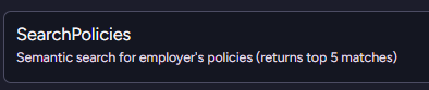 For example, in the case of a human resource assistant, we may want to expose the employer’s policies to the agent, so it can answer questions such as “What is the required holiday request time?”.
